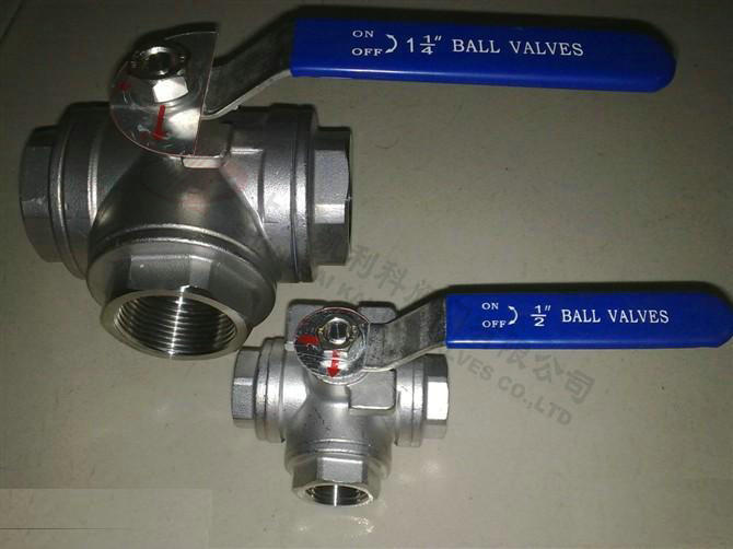 (Q44F)L型三通球閥只能連接相互正交的兩條管道,不能同時(shí)保持第三條管道的相互連通,只起分配作用。T型能使三條正交的管道相互聯(lián)通和切斷第三條通道,起分流、合流作用。