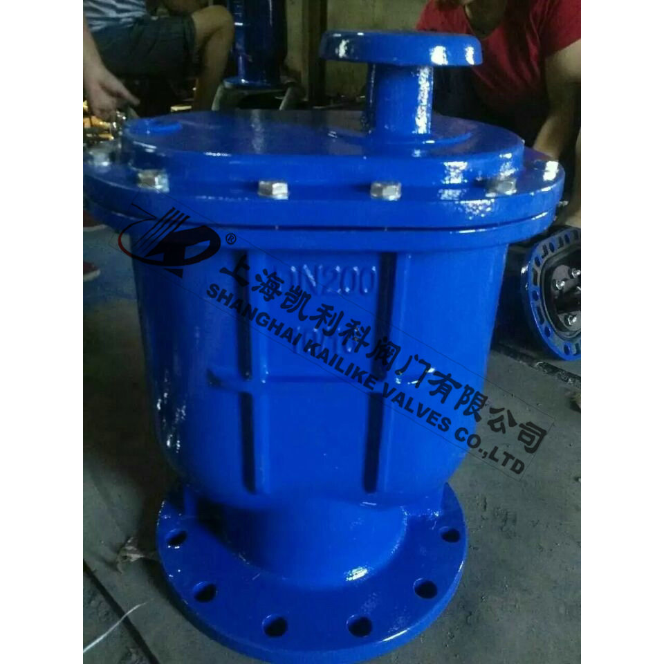 當(dāng)管內(nèi)開(kāi)始注水時(shí),塞頭停留在開(kāi)啟位置,進(jìn)行大量排氣,當(dāng)空氣排完時(shí),閥內(nèi)積水浮球被浮起,傳動(dòng)塞頭至關(guān)閉位置,停止大量排氣;當(dāng)管內(nèi)水正常輸送時(shí),如有少量空氣聚集在閥內(nèi)到相當(dāng)程度,閥內(nèi)水位下降,浮球隨之下降,此時(shí)空氣則由小孔排出。當(dāng)抽水機(jī)停止,管內(nèi)水流空時(shí),或遇管內(nèi)產(chǎn)生負(fù)壓時(shí),此時(shí)塞頭開(kāi)啟,吸入空氣確保管線安全。