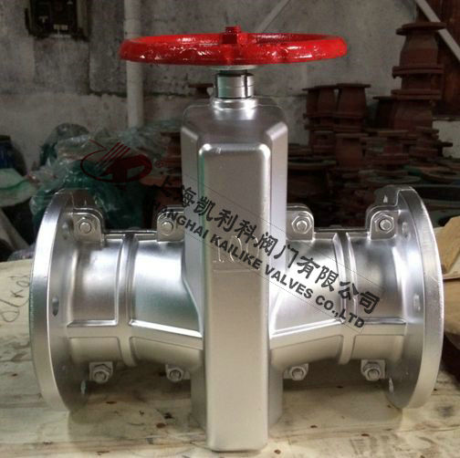 GJ41X鋁合金管夾閥由上下鑄鐵、鋁合金、不銹鋼閥體,橡膠管套、大小閥桿閘板、上下導(dǎo)柱等零件組成。當(dāng)順轉(zhuǎn)手輪時,使大小閥桿同時帶動上下茬板、壓縮管套、進行關(guān)閉,反之即行開啟。這樣,閘板在導(dǎo)柱之間上下往復(fù)完成閥門開閉工作,另因橡膠管套或承力小,所以在開閉時,操作人員旋轉(zhuǎn)輪時只要感到適量抵觸,均達到開閉極點。切勿盡力多人補助,禁用其他工具開閉。