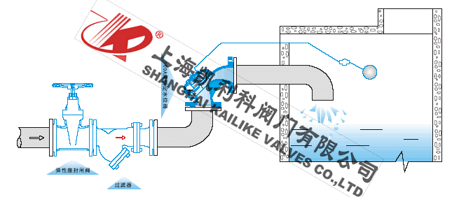 100A隔膜式定水位閥是一種隔膜式調(diào)節(jié)水箱和水塔液面高度的閥門。閥門由一特殊強化尼龍膜片將其分為上下兩個腔室,當(dāng)液面達到設(shè)定位置時,浮球?qū)чy關(guān)閉,上腔壓力大于下腔,閥門關(guān)閉,即停止供水.當(dāng)液面下降超過預(yù)設(shè)位置,浮球?qū)чy開啟,上腔壓力小于下腔壓力,閥門開啟.閥門向池內(nèi)供水。