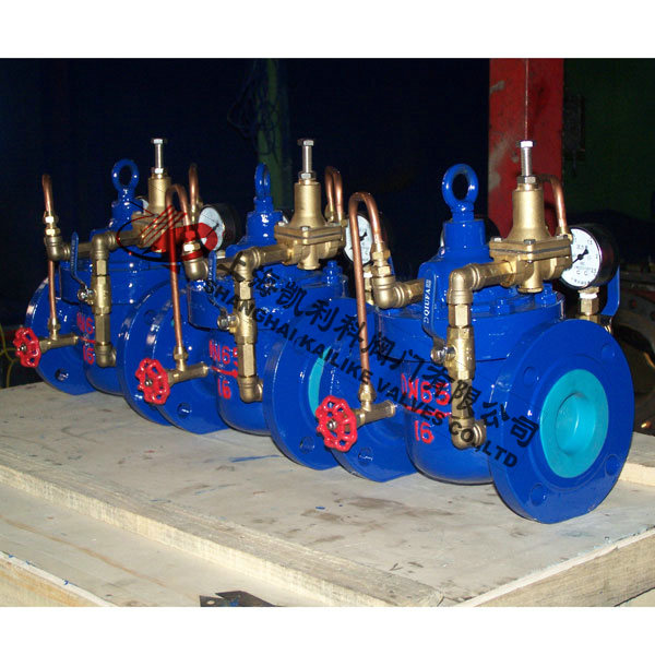 200X減壓閥由主閥、導(dǎo)閥、針閥、球閥、微型過濾器和壓力表組成水力控制接管系統(tǒng)。使用時(shí),當(dāng)調(diào)定出口壓力后,能自動(dòng)保持穩(wěn)定出口壓力。減壓穩(wěn)壓閥利用導(dǎo)閥自力控制,不需要其它裝置和能源,保養(yǎng)簡便,壓力控制準(zhǔn)確度高,受進(jìn)口壓力和流量影響小,減壓穩(wěn)壓可靠。200X減壓穩(wěn)壓閥廣泛用于高層建筑、生活區(qū)等供水管網(wǎng)系統(tǒng)及城市供水工程。