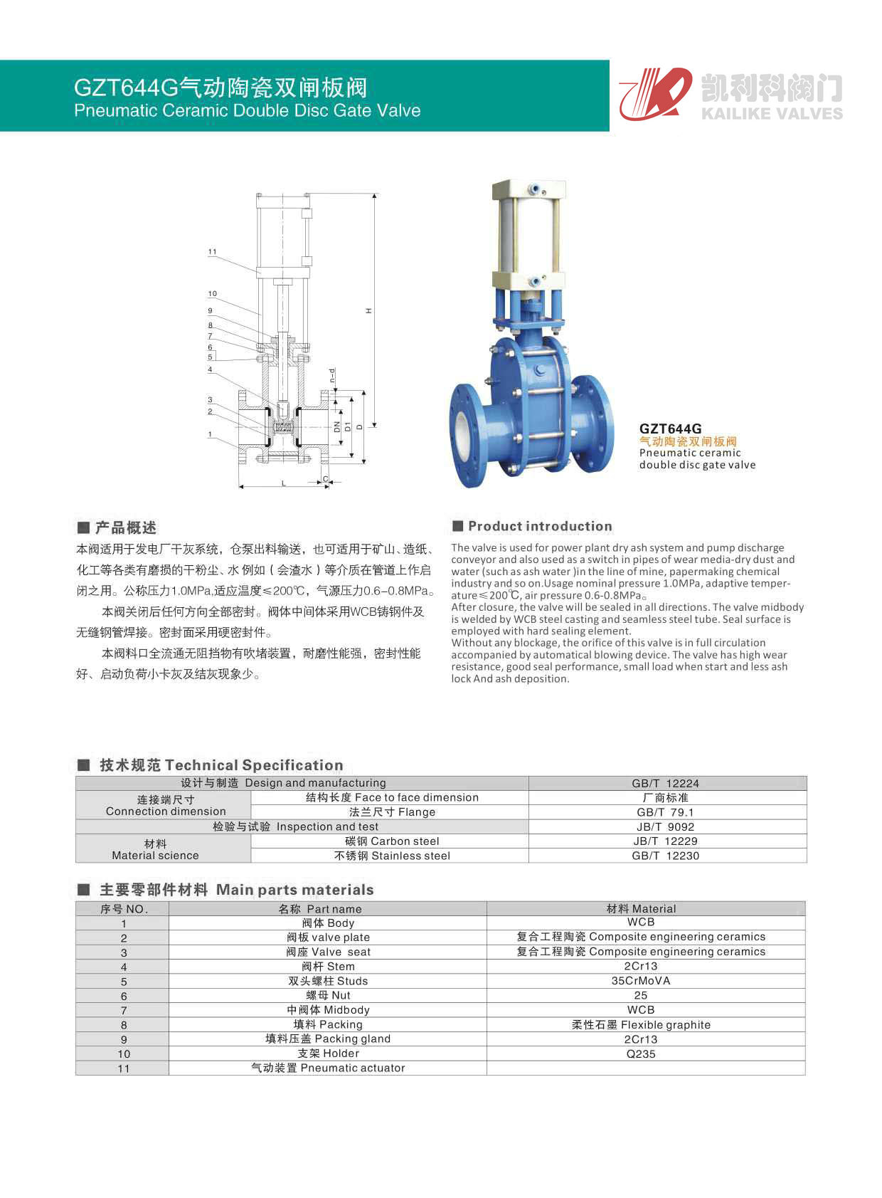 氣動(dòng)陶瓷雙閘板閥關(guān)閉后任何方向全部密封。閥體中間體采用WCB鑄鋼件及無(wú)縫鋼管焊接。密封面采用硬密封件。