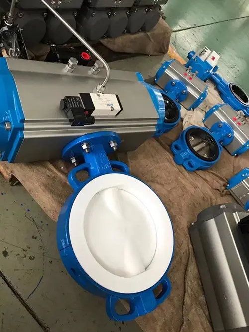 D671F46氣動襯氟對夾蝶閥廣泛用于防腐管道系統(tǒng)上。主要用以實現(xiàn)閥門的開啟、關(guān)閉與調(diào)節(jié)。全襯聚四氟乙烯(F4)、聚三氟氯乙烯(F3)和聚全氟乙丙烯(F46)氟塑料襯里閥,具有耐腐蝕、無泄